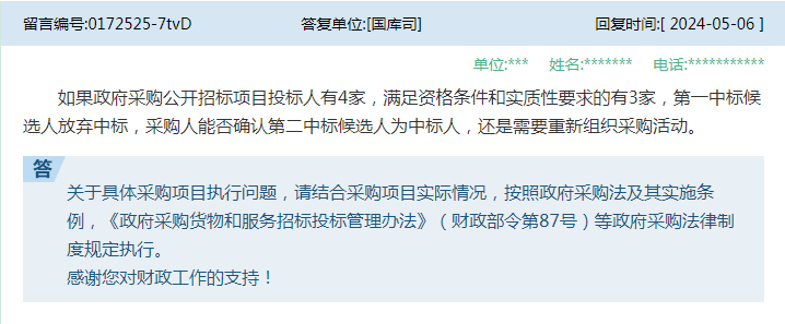 答:关于具体采购项目执行问题★,请结合采购项目实际情况,按照政府采购法及其实施条例,《政府采购质疑和投诉办法》(财政部令第94号)等政府采购法律制度规定执行。